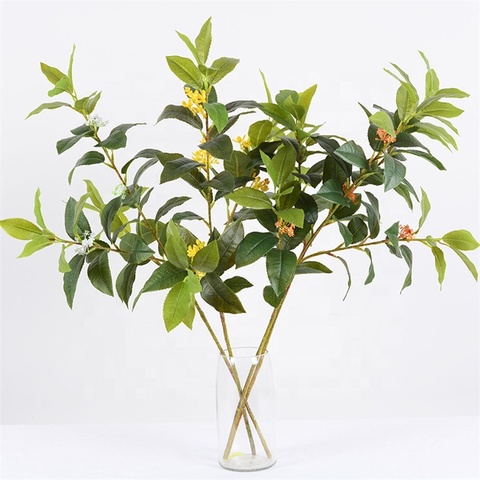 Высококачественные латексные зеленые листья на ощупь, искусственные листья османтуса, желтые белые цветы для свадебного домашнего декора